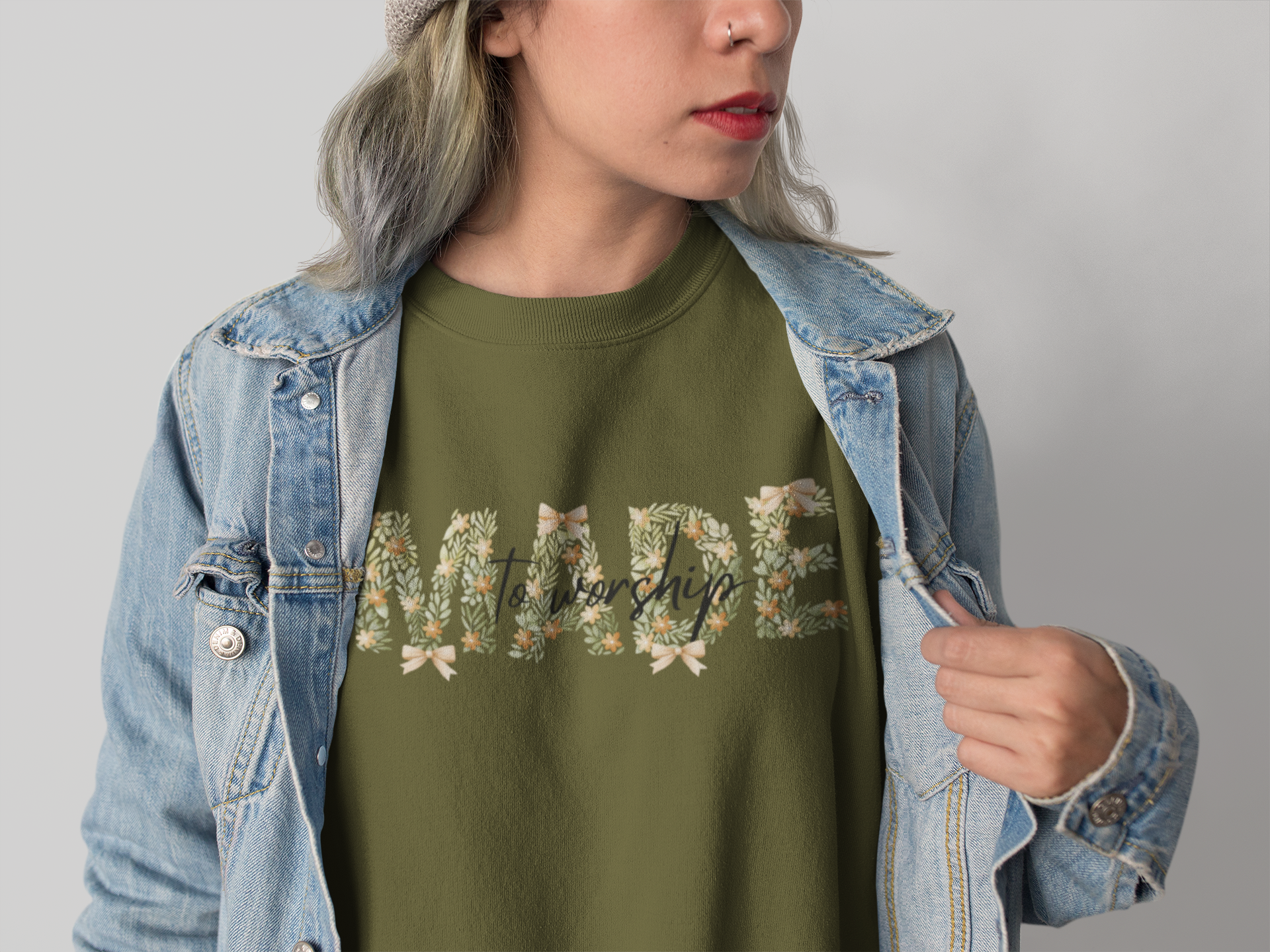 This cozy crewneck blends blooming florals with bold faith, reminding you (and everyone around you) that worship isn’t just what we do—it’s what we were made for. Featuring delicate floral accents and a message rooted in truth, it’s perfect for coffee runs, worship nights, or just soaking in His presence.