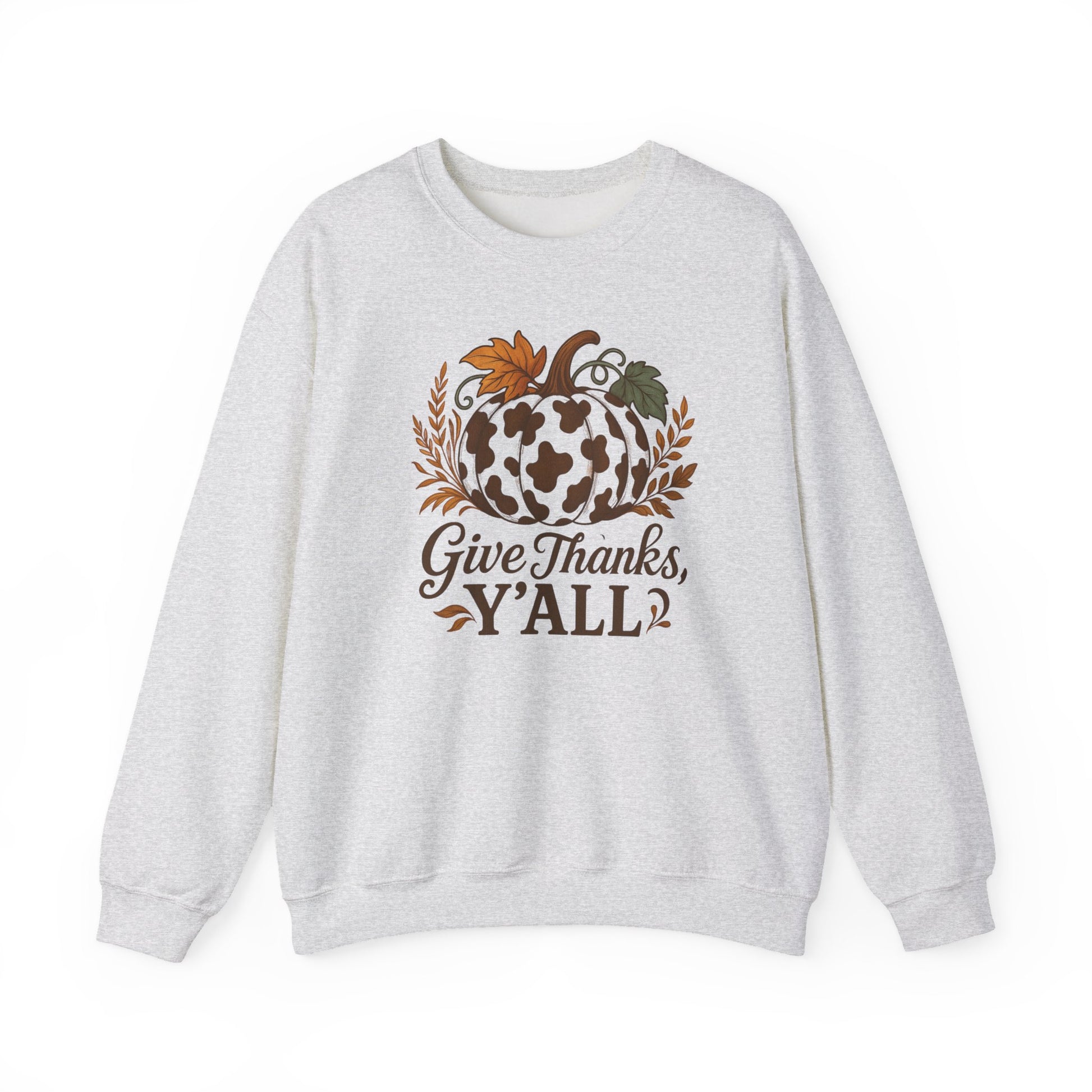 Wrap yourself in cozy, country charm with our “Give Thanks, Y’all” crewneck. Featuring a boutique-style design with a cow-print pumpkin, warm fall tones, and elegant western script, this sweatshirt is perfect for pumpkin patch strolls, Thanksgiving gatherings, and praising the Lord in style. Made with ultra-soft fabric for all-day comfort, it’s a statement of gratitude and southern grace you’ll reach for all season long.