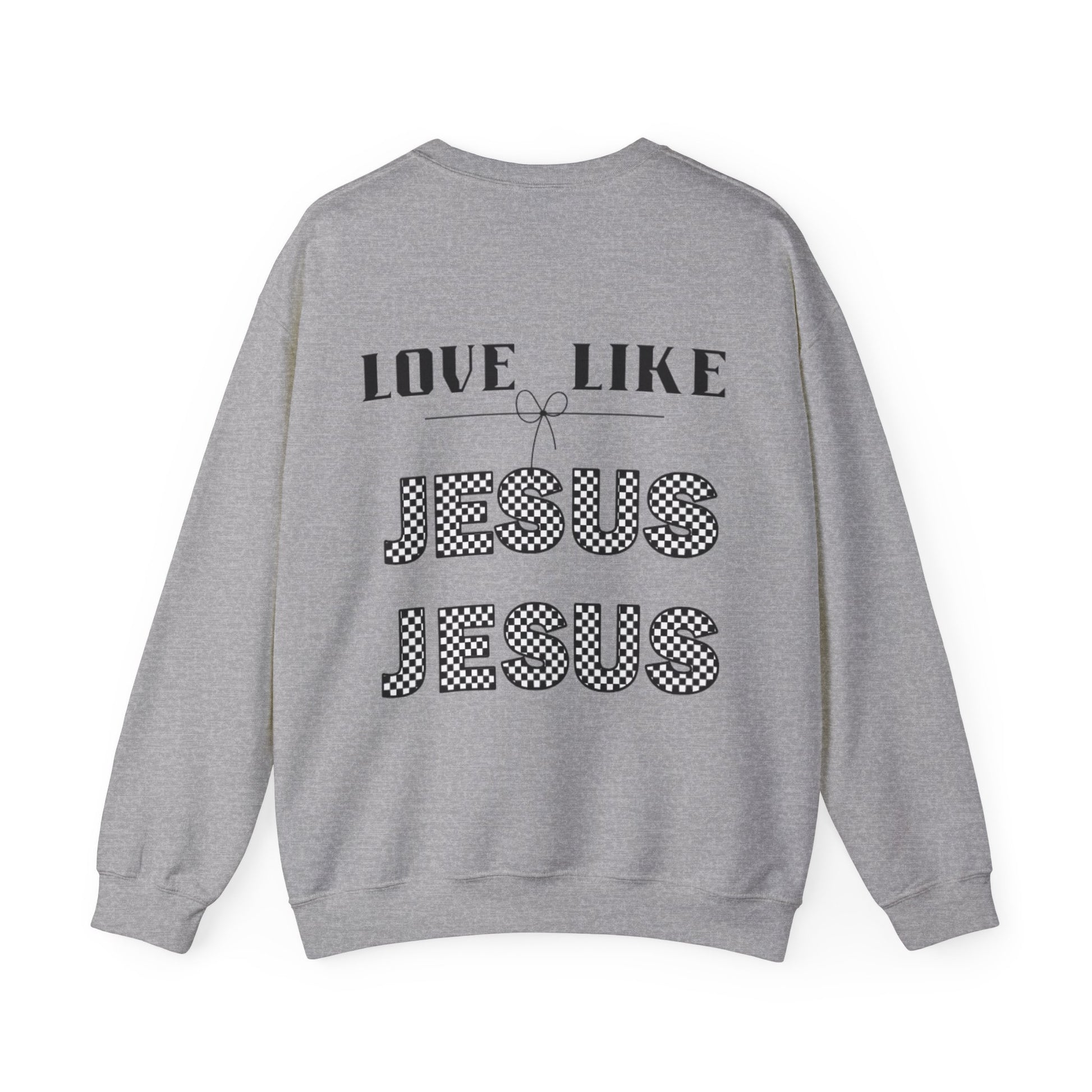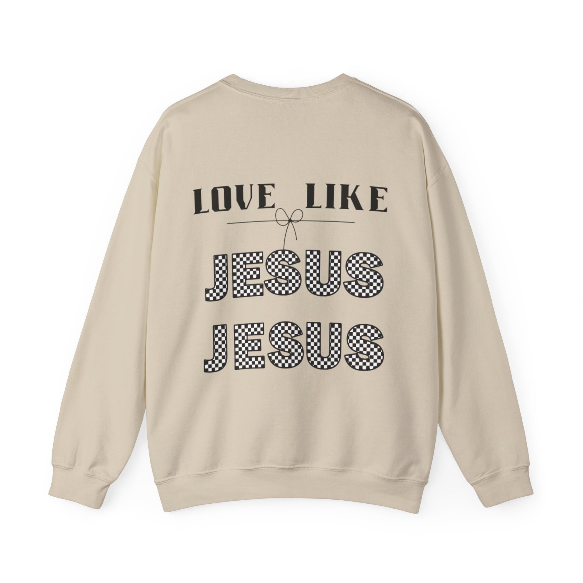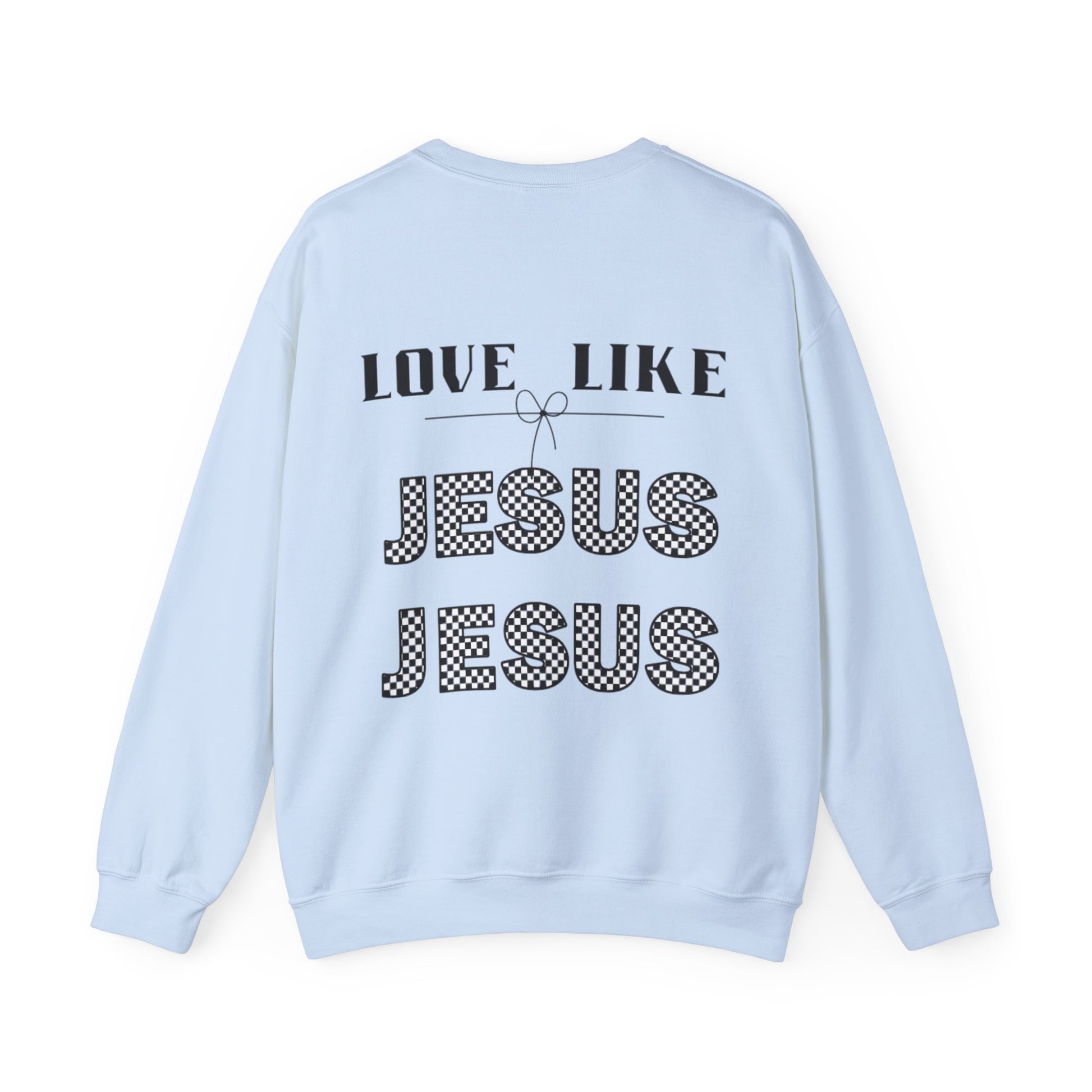 Cozy up in kindness with our “Love Like Jesus” crewneck — the perfect reminder to lead with grace, patience, and a heart like His. Whether you're running errands, heading to church, or just lounging at home, this soft and stylish piece wraps you in warmth and the Word.